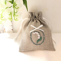 すずらん刺繡のミニ巾着